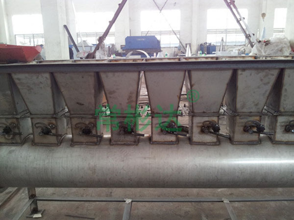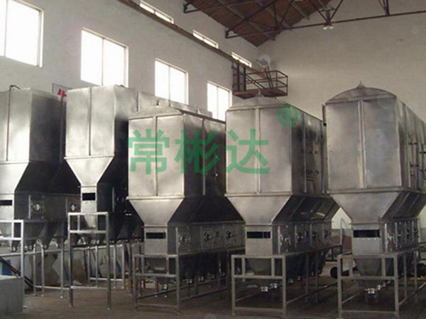 潔凈的熱風經閥板分配進入床體內,從加料器進入的濕物料被熱風形成沸騰狀態。由于熱風與物料廣泛接觸,增強了傳熱傳質的過程,因此在較短時間內就可干燥。如用連續型,物料從床體的一頭進入,經過幾十秒至幾分鐘沸騰干燥,自動從床體另一頭流出。本設備一般進行負壓操作。
