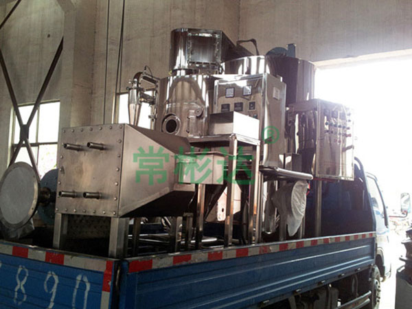 該機采用全封閉形式,所有部件均采用不銹鋼制造,配有三級凈化裝置,過濾后的空氣達十萬級要求。筒體與頂部裝有冷壁裝置,使壁溫<80℃,干燥塔內裝有氣刷掃塔裝置。經該機干燥后的中藥浸膏粉,不會出現焦化變質現象,大大增加了收粉率(95%以上),而且不會產生混藥現象和粘壁現象。