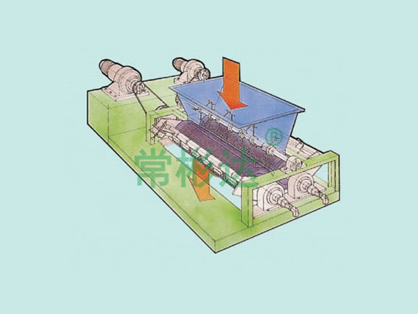 ◎槽形成型機: 由加料斗和刻有槽的二根輥子構成。以增大物料表面積的造粒為目的。物料被內側運轉的輥子吸入,被反轉的外側刮刀切成粒狀。